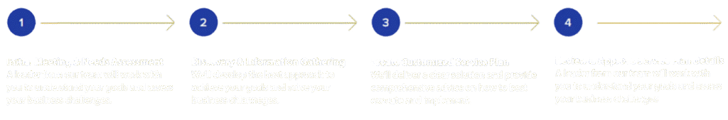 Based on your needs, we create a tailored strategy that outlines services, priorities, and onboarding timelines.